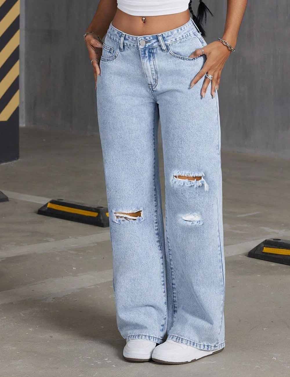 Distressed Ripped Wide Leg Baggy Denim Pants