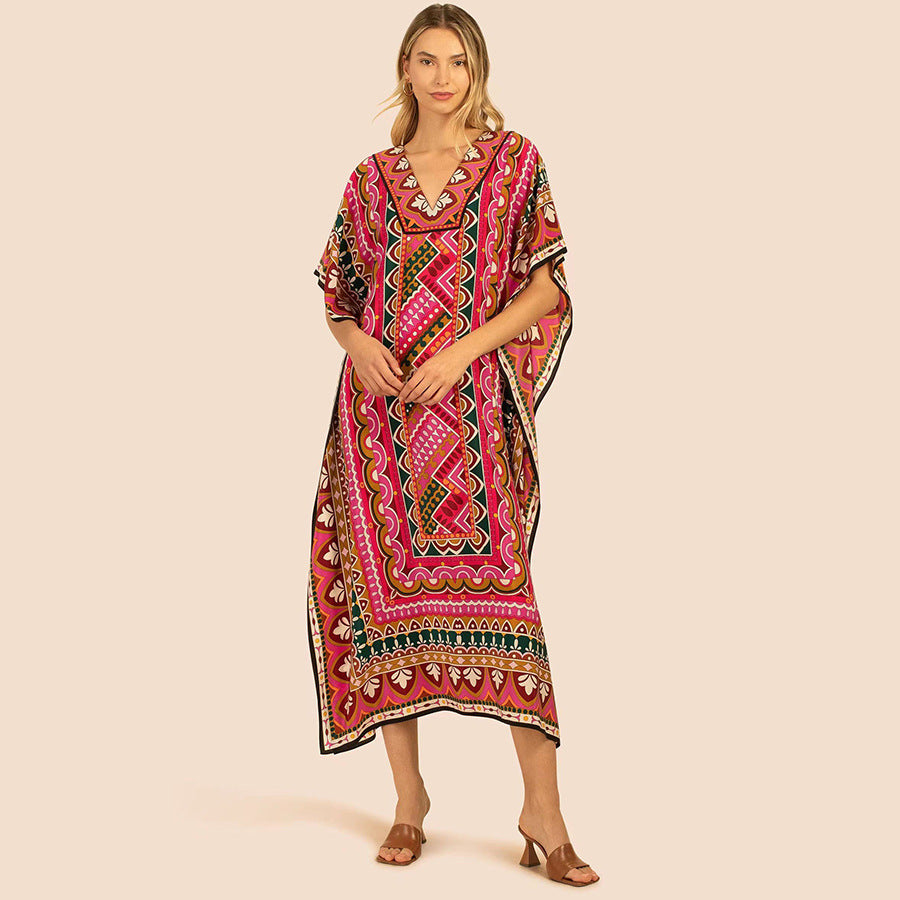Popular Positioning Printed Beach Blouse Robe-Style Casual Vacation Dress Bikini Blouse