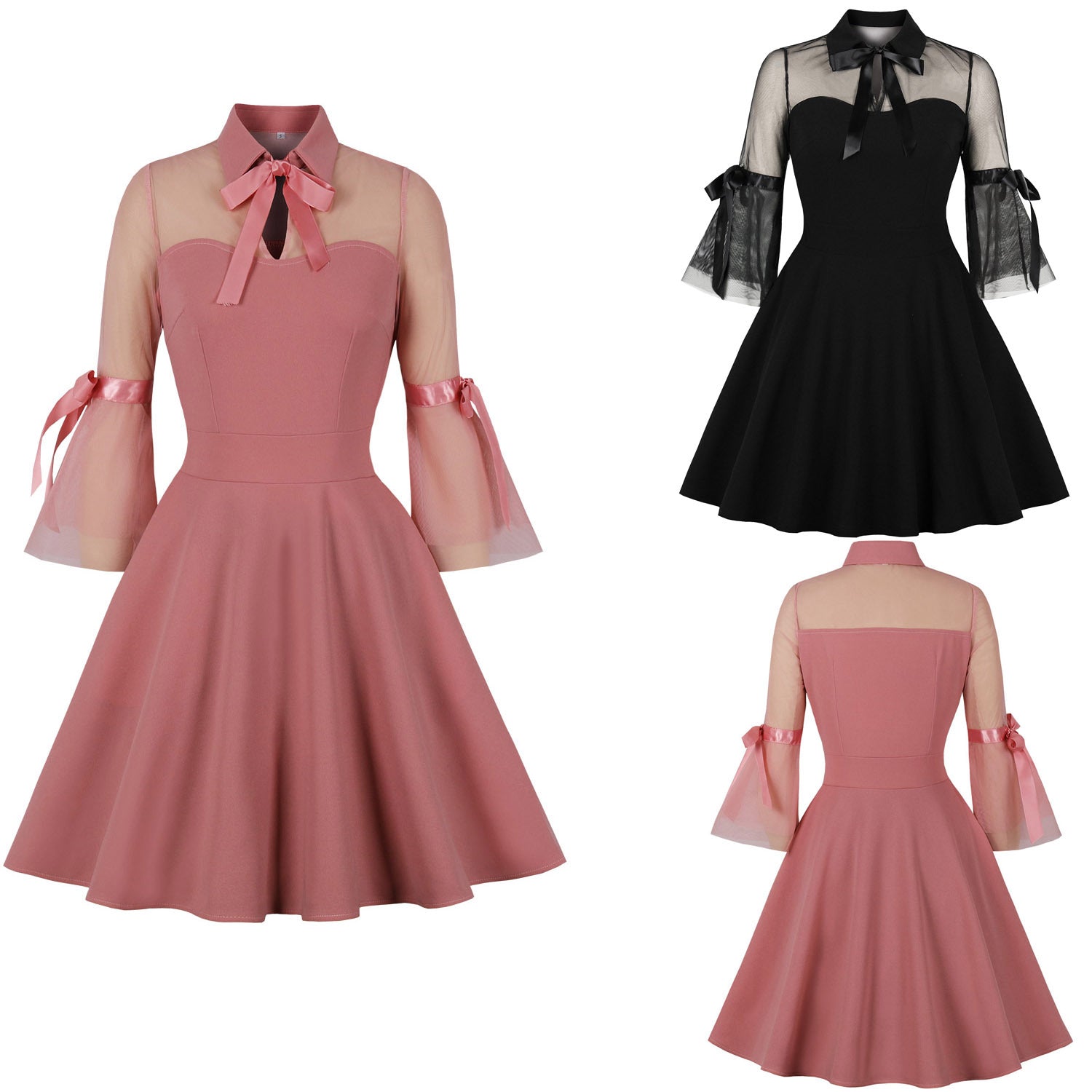 This stunning retro dress combines elegance and comfort, perfect for various occasions. Made from high-quality polyester and featuring a beautifully embroidered lace design, it offers a unique style for the modern woman.