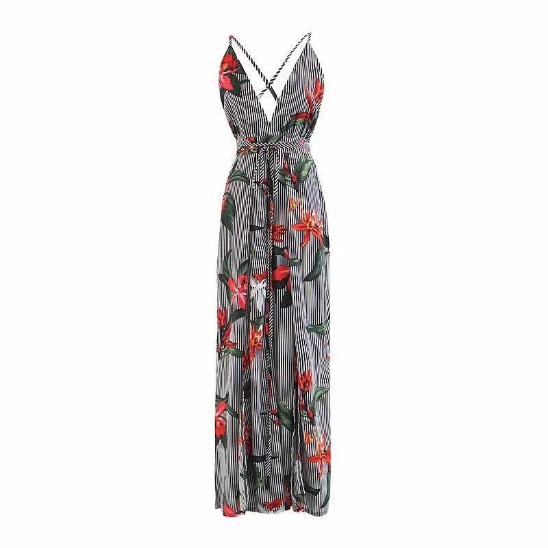 Sexy Spaghetti Strap Print Wide Leg Pants Jumpsuit Rompers