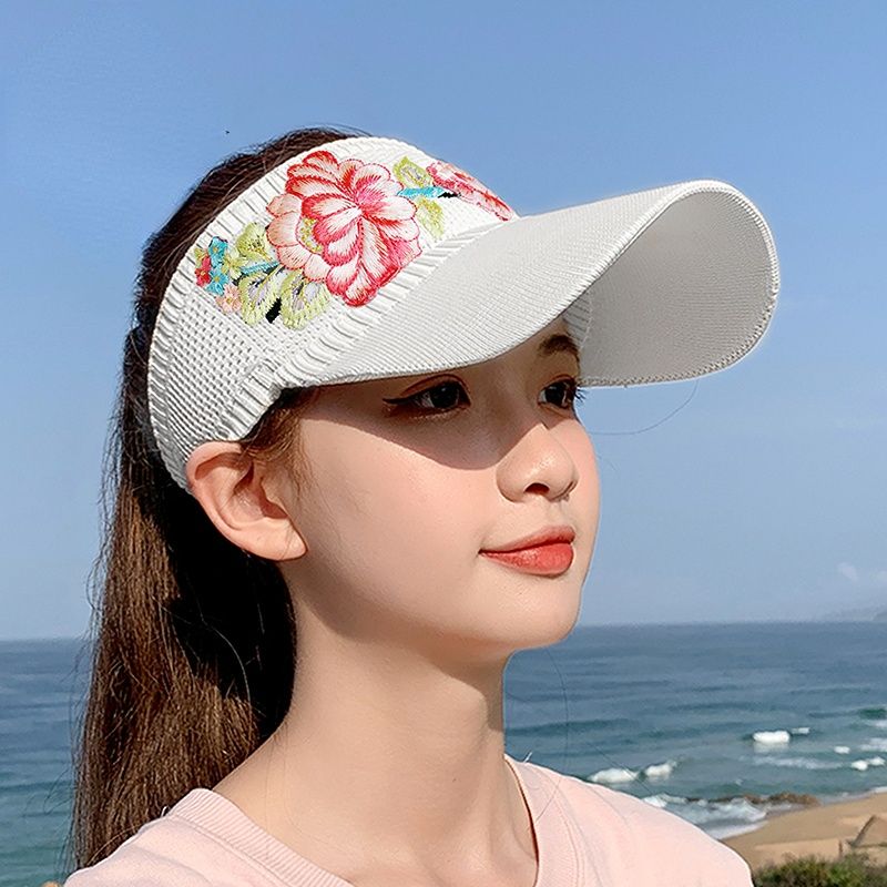 Sunshade Hat Women'S Spring And Summer National Embroidered Sunscreen Baseball Cap Outdoor Empty Top Sun Hat