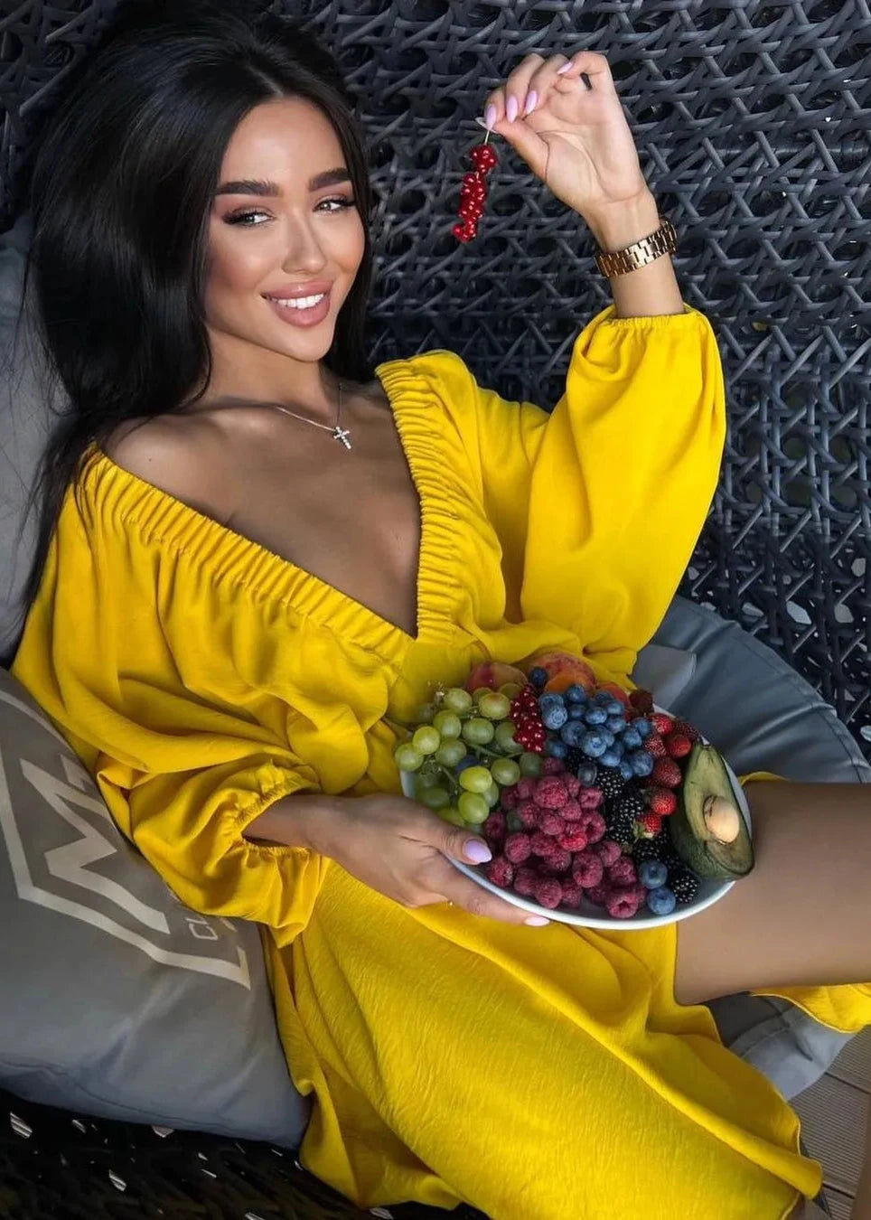 This dress is available in vibrant red white and cheerful yellow colors making it easy to match various settings and moods. Its unique sleeve design adds a touch of drama while maintaining elegance suitable for diverse events.